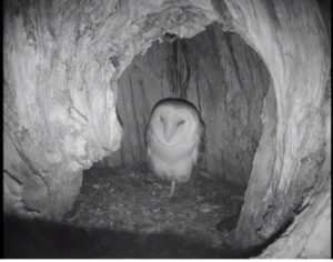 Two owls at home in the Ritz. One owl suddenly climbed up the side of the pantry wall out of view. The owl left behind watched with interest saying something…couldn’t hear…😆 After a minute, the owl dropped back down to the floor of the cavity and is perched on the lip.