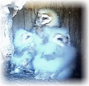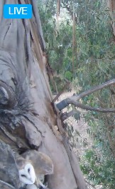 One of the owlets has its head out of the cavity, trying to see what’s going on above and below. It’s a bit too glary to it clearly, it’s not blocking enough of the IR.
